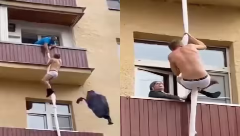 ट्विटर पर वायरल हो रहे इस वीडियो में अंडरवियर पहने एक युवक को बालकनी से कूदते हुए देखा जा सकता है. वह कपड़े से बनी रस्सी के सहारे नीचे उतरने की कोशिश कर रहा है. ऐसा लग रहा था मानों प्रेमी अपनी प्रेमिका के कमरे में बैठा हो. फिर उसके माता-पिता आये। यह देखकर उसकी सांसें अटक गईं और वह भागने लगा। उसे कपड़े पहनने का भी समय नहीं मिला.