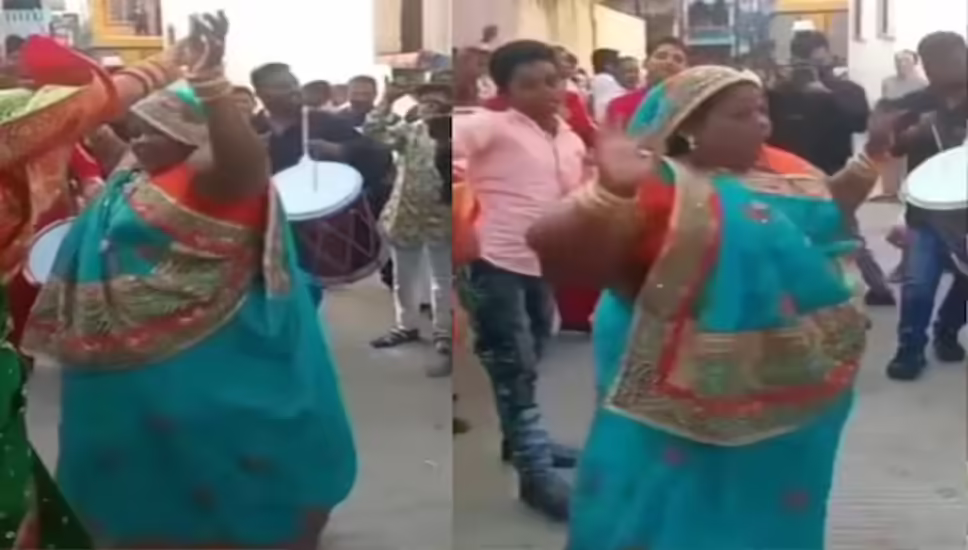 वायरल हो रहे वीडियो में आप ढोल वादकों को जज्जम डोल बजाते हुए देख सकते हैं. शायद बारात का समय है और घर की औरतें नाच रही हैं और जश्न मना रही हैं। इसी बीच नीली साड़ी में आंटी इस तरह डांस करने लगती हैं कि कोई भी उनके आसपास खड़ा नहीं हो पाता। आंटी का वजन देख कुछ लोग उनका मजाक भी उड़ा रहे हैं, लेकिन उनकी एनर्जी देखने लायक है.