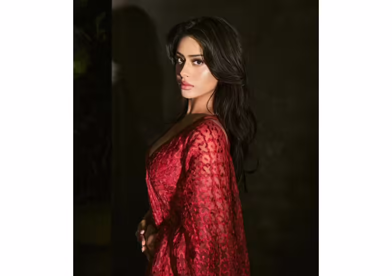 PICS- अजय देवगन की लाड़ली न्यासा देवगन ने रेड साड़ी में कराया फोटोशूट, देखें तस्वीरें