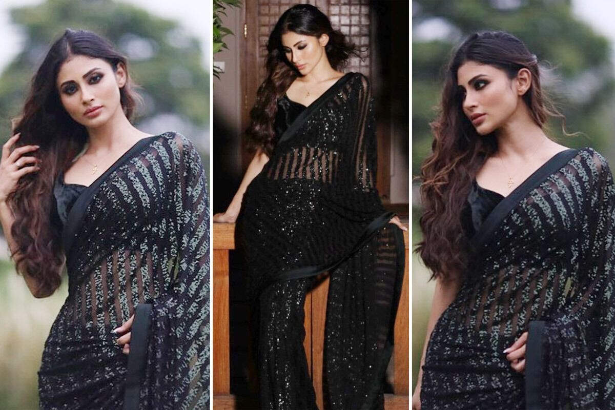 ब्लैक साड़ी में मौनी लगीं बवाल