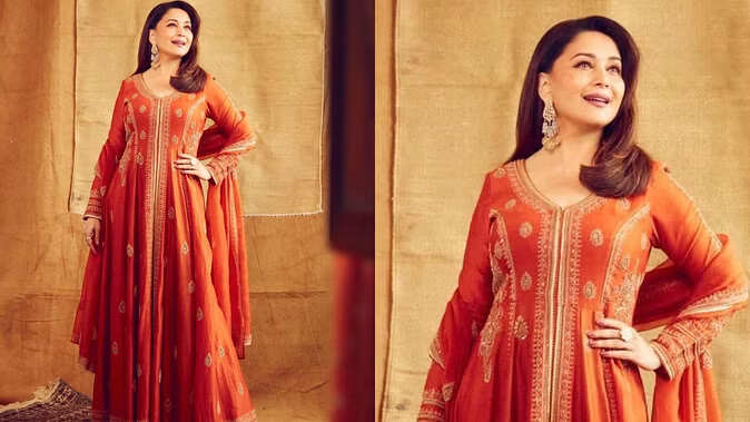 तिरंगे का पहला रंग केसरिया है। ऐसे में आप माधुरी दीक्षित जैसा आउटफिट पहनकर अपने लुक को निखार सकती हैं। इस तरह का ऑरेंज अनारकली गाउन आपको सबसे अलग दिखाने में मदद करेगा।