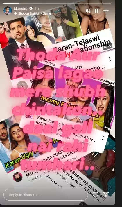 सोशल मीडिया पेज 'tellyreporter' ने करण कुंद्रा की इंस्टाग्राम स्टोरी को साझा करते हुए लिखा, 'Swipe Left to see the post', जिसमें उन्होंने सभी आरोपों को खारिज करते हुए सच को सामने रखा। इस पोस्ट में उन्होंने गलत खबरों के कई स्क्रीनशॉट भी साझा किए हैं। उन्होंने लिखा, 'थोड़ा और पैसा लगाओ मेरे शुभचिंतकों, दाल गल नहीं रही तुम्हारी।'