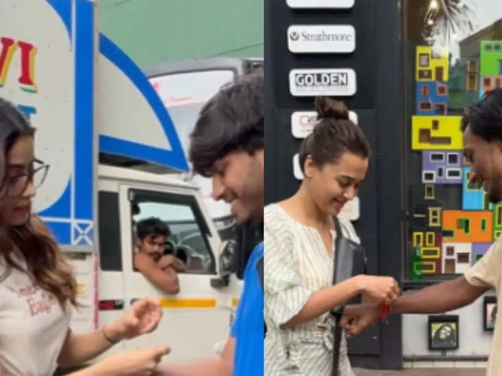 जान्हवी कपूर के अलावा टीवी एक्ट्रेस और बिग बॉस विनर तेजस्वी प्रकाश ने अपने एक फैन को राखी बांधी है। फैन को राखी बांधते हुए तेजस्वी कहती हैं कि मेरा भाई यहां नहीं है, आप पहले व्यक्ति हैं जिन्हें मैं राखी बांध रही हूं। इसके बाद फैन शगुन के तौर पर पैसे लेकर तेजस्वी को दे देता है. एक्ट्रेस पैसे तो ले लेती है, लेकिन बाद में यह कहकर वापस कर देती है कि मैं बड़ी हूं इसलिए दे दूं। एक्ट्रेस के इस वीडियो को खूब पसंद किया जा रहा है. यूजर्स इस पर कमेंट कर इसकी खूब तारीफ कर रहे हैं.