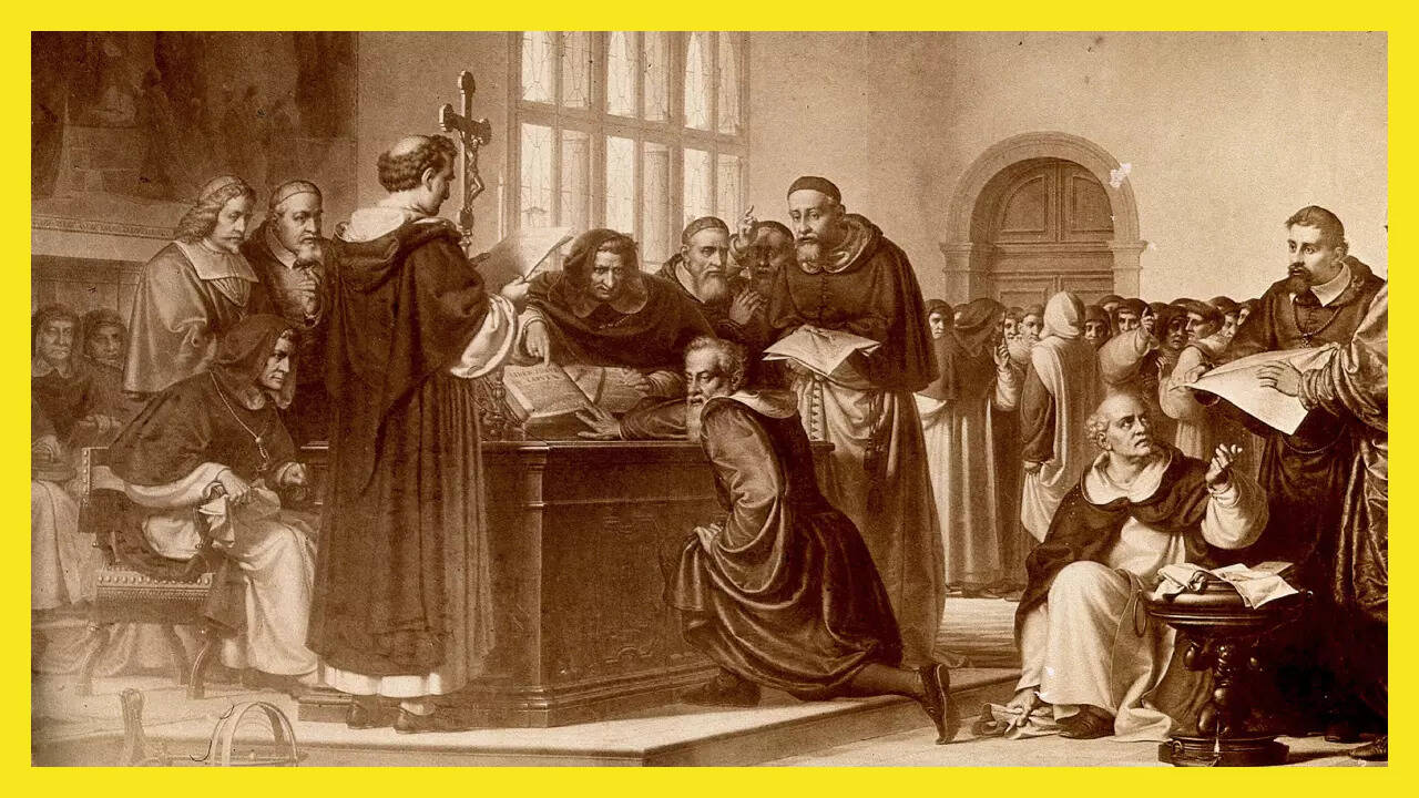 गैलीलियो गैलीली और कैथोलिक चर्च के बीच टकराव उस युग की सबसे चर्चित बौद्धिक भिड़ंतों में से एक था। उस समय चर्च का दृढ़ विश्वास था कि पृथ्वी ब्रह्मांड का केंद्र है और सभी ग्रह व सूर्य उसकी परिक्रमा करते हैं। जब गैलीलियो ने कोपरनिकस के सूर्यकेंद्री सिद्धांत का समर्थन किया तो यह चर्च की धार्मिक सत्ता और स्थापित मान्यताओं के लिए एक सीधी चुनौती बन गया। 1616 में चर्च ने इस सिद्धांत को 'धर्मविरोधी' और 'विपथगामी' करार देते हुए गैलीलियो को इस विचार के प्रचार से स्पष्ट रूप से मना कर दिया। लेकिन 1632 में गैलीलियो ने अपनी प्रसिद्ध पुस्तक 'Dialogue Concerning the Two Chief World Systems' प्रकाशित की जिसमें उन्होंने संवाद शैली में भूतल केंद्रित और सूर्यकेंद्रित दोनों मॉडलों की तुलना की तथा वैज्ञानिक तर्कों के साथ सूर्यकेंद्रित सिद्धांत का समर्थन किया। इस साहसिक कदम के परिणामस्वरूप 1633 में उन पर धर्मविरोध का मुकदमा चलाया गया, उन्हें दोषी ठहराया गया और जीवनभर के लिए नजरबंद कर दिया गया। यह घटना इतिहास में वैज्ञानिक स्वतंत्रता और धार्मिक कट्टरता के टकराव का प्रतीक बन गई।