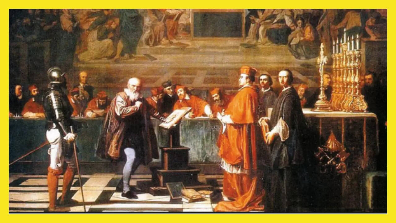 1633 में गैलीलियो गैलीली को रोमन इनक्विजिशन (Roman Inquisition) के समक्ष प्रस्तुत किया गया जहाँ उन पर कोपरनिकस के सूर्यकेंद्री सिद्धांत का प्रचार करने और चर्च की आधिकारिक शिक्षाओं का उल्लंघन करने का गंभीर आरोप लगाया गया। इस सुनवाई के दौरान उन्हें "धर्मविरोधी" (vehemently suspect of heresy) घोषित किया गया और सार्वजनिक रूप से अपने वैज्ञानिक विचारों को त्यागने, शपथ लेने और उनकी निंदा करने के लिए बाध्य किया गया। गैलीलियो पर मानसिक और शारीरिक रूप से अत्यधिक दबाव डाला गया ताकि वे अपनी बात से पीछे हट जाएँ। उन्हें औपचारिक रूप से कारावास की सजा सुनाई गई जिसे बाद में नजरबंदी (house arrest) में परिवर्तित कर दिया गया और जहाँ वे जीवनभर कैद रहे। इस घटनाक्रम से जुड़ा एक प्रसिद्ध कथन - 'फिर भी यह घूमती है!" (Eppur si muove) पारंपरिक रूप से गैलीलियो से जोड़ा जाता है। यद्यपि इसके ऐतिहासिक प्रमाण स्पष्ट नहीं हैं, फिर भी यह वाक्य आज वैज्ञानिक दृढ़ता, सत्य के प्रति अडिगता और बौद्धिक स्वतंत्रता का शक्तिशाली प्रतीक बन चुका है।