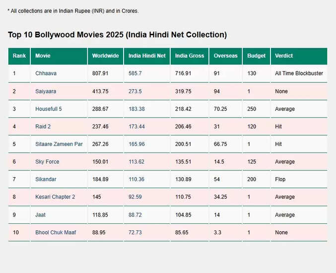 विक्की कौशल और रश्मिका मंदाना की फिल्म 'छावा' का ओवरसीज कलेक्शन 'सैयारा' से कम है। Sacnilk के अनुसार, 'छावा' ने 92 करोड़ रुपये का विदेशी कारोबार किया, जो 'सैयारा' से 2 करोड़ रुपये कम है। हालांकि, विश्व स्तर पर और ग्रॉस कलेक्शन में 'छावा' आगे है, जिसने 807.91 करोड़ रुपये और ग्रॉस में 716.91 करोड़ रुपये का कारोबार किया।