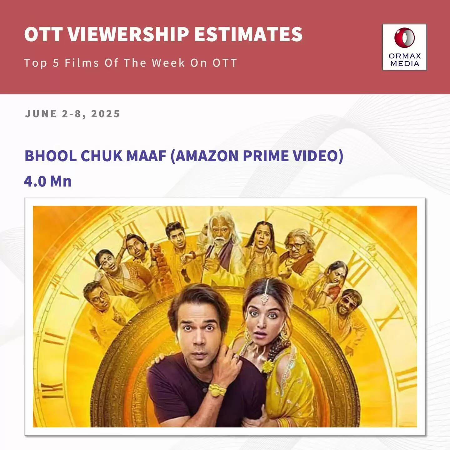 राजकुमार राव और वामिका गब्बी की फिल्म 'भूल चूक माफ' अब ओटीटी पर उपलब्ध है और दर्शकों द्वारा इसे पसंद किया जा रहा है। यह एक रोमांटिक-कॉमेडी फिल्म है, जिसे 4.0 मिलियन व्यूज मिले हैं और यह इस हफ्ते पांचवे स्थान पर है।