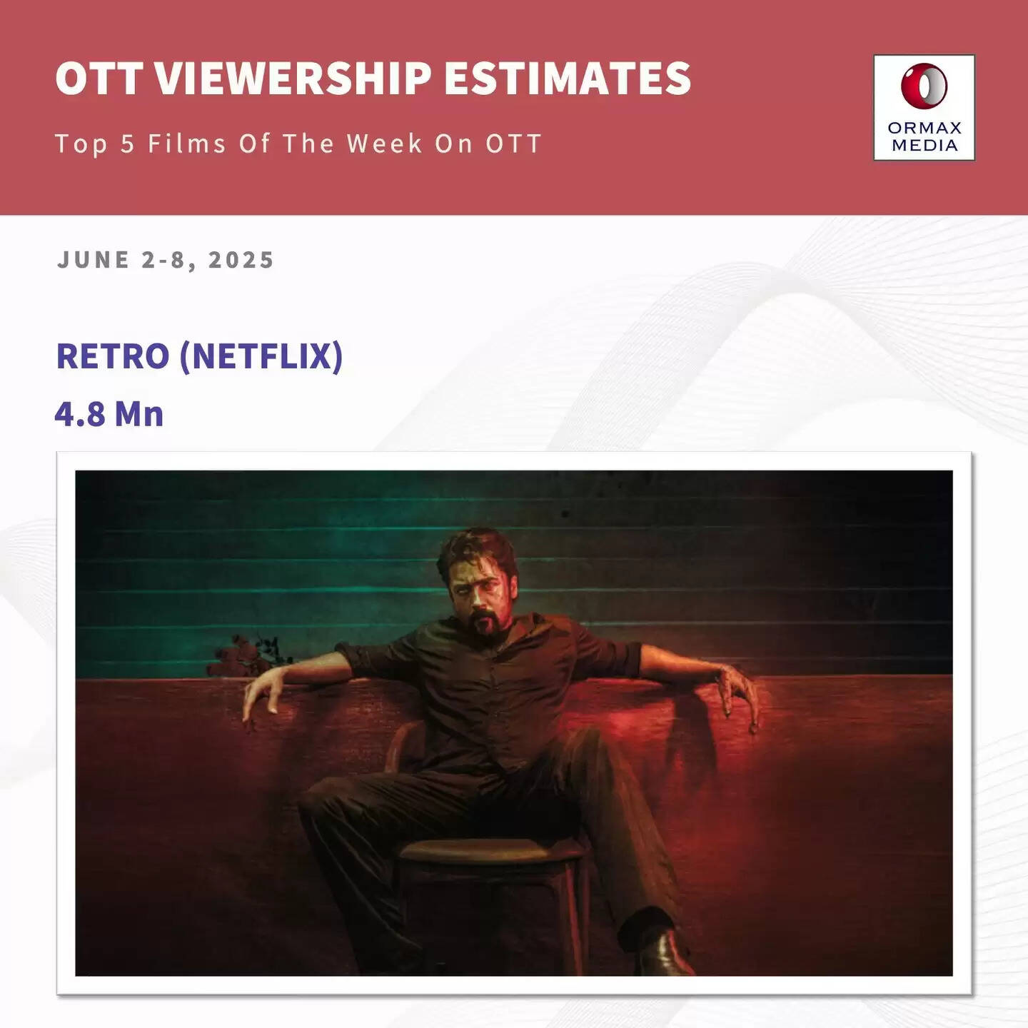 साउथ सुपरस्टार सूर्या की फिल्म 'रेट्रो' इस लिस्ट में तीसरे स्थान पर है, जिसे इस हफ्ते 4.8 मिलियन व्यूज मिले हैं। यह फिल्म 1 मई को रिलीज हुई थी और थियेटर में ठीक-ठाक कमाई की थी। अब यह नेटफ्लिक्स पर उपलब्ध है और दर्शक इसे पसंद कर रहे हैं।
