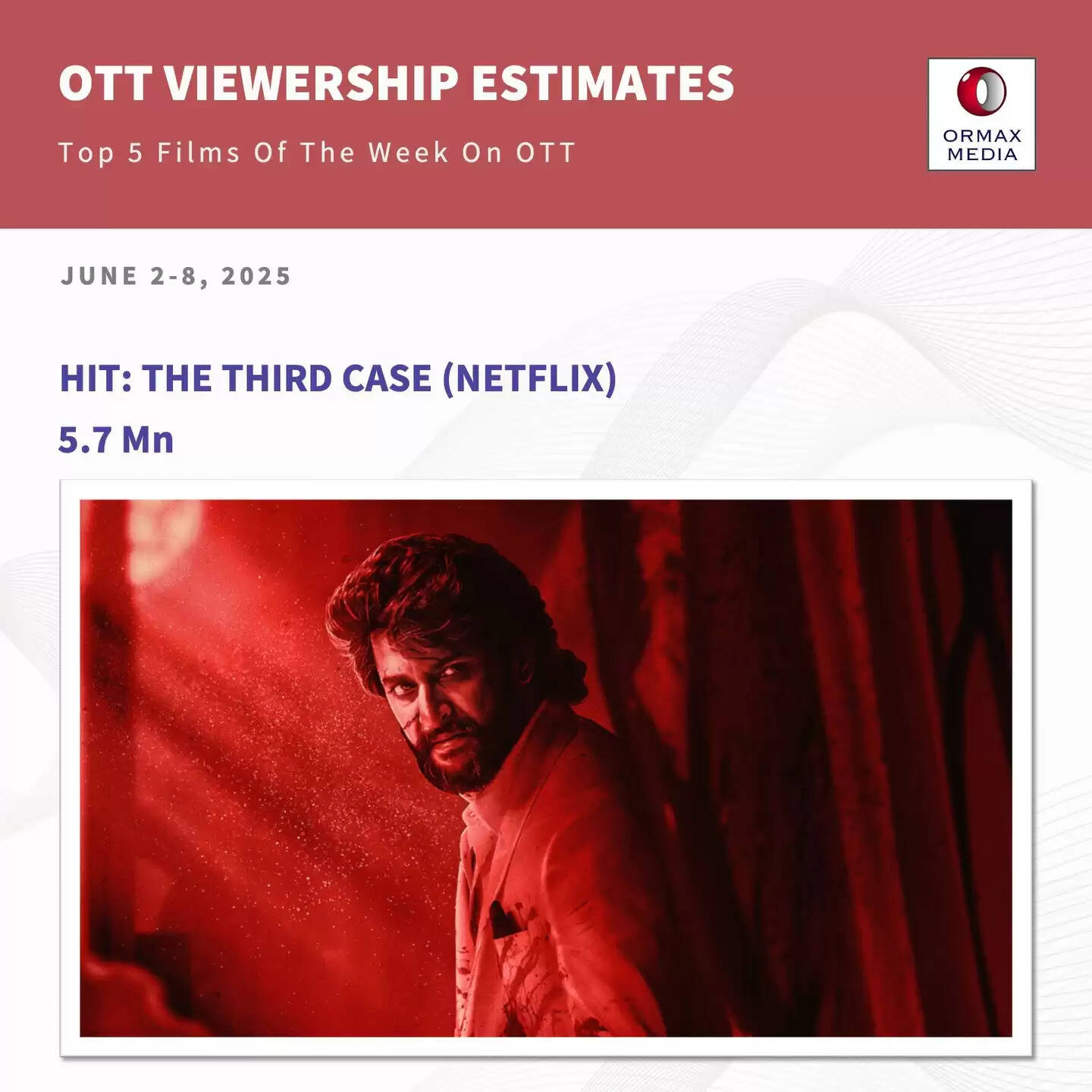 नेटफ्लिक्स पर स्ट्रीम हो रही फिल्म 'हिट 3: द थर्ड केस' साउथ अभिनेता नानी की है। इस फिल्म में केजीएफ फेम एक्ट्रेस श्रीनिधि शेट्टी मुख्य भूमिका में हैं। यह एक्शन-थ्रिलर मूवी 1 मई को सिनेमाघरों में रिलीज हुई थी और अब ओटीटी पर भी दर्शकों का दिल जीत रही है। इस हफ्ते इसे 5.7 मिलियन व्यूज मिले हैं, जिससे यह नंबर 1 पर बनी हुई है।