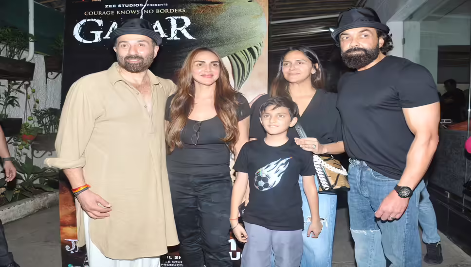 Gadar 2: सौतेली बहन ईशा देओल ने घर पर रखी 'गदर 2' की स्पेशल स्क्रीनिंग, सनी और बॉबी देओल ने भांजे संग दिया पोज