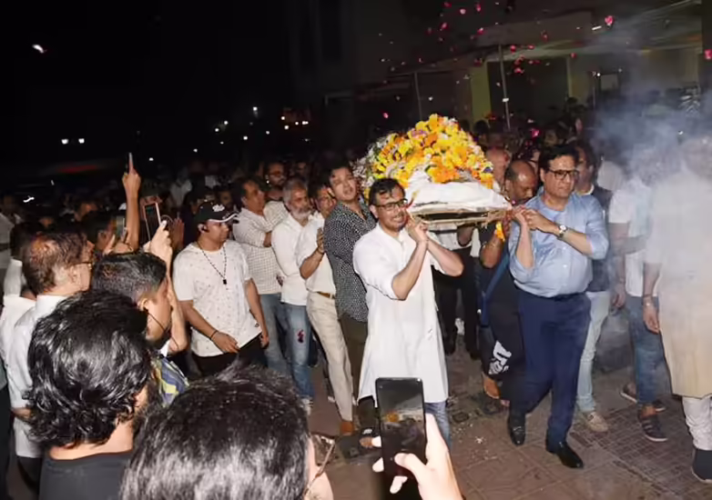 मनोरंजन डेस्क, 10 मार्च 2023- दिग्गज अभिनेता और निर्देशक सतीश कौशिक के निधन की खबर से फिल्म इंडस्ट्री को गहरा धक्का लगा है। सतीश ने 66 साल की उम्र में इस दुनिया को अलविदा कह दिया। बता दें कि सतीश कौशिक का गुरुवार सुबह दिल का दौरा पड़ने से निधन हो गया। दिल्ली के एक अस्पताल में पोस्टमॉर्टम के बाद अभिनेता के शव को मुंबई लाया गया, जहां बॉलीवुड के बड़े सितारों ने सतीश कौशिक को श्रद्धांजलि दी. अनुपम खेर के साथ सलमान खान, अभिषेक बच्चन और रणबीर कपूर जैसे बड़े सितारे भी सतीश के अंतिम दर्शन के लिए पहुंचे. अब जब सतीश कौशिक का दाह संस्कार शुरू हो गया है तो अभिनेता की अर्थी वर्सोवा श्मशान घाट के लिए रवाना हो गई है, जहां उनका अंतिम संस्कार किया जाएगा. हालांकि अनुपम खेर के साथ-साथ सलमान खान भी अभिनेता के कंधे पर बीयर रखकर रोए थे. यहां देखें तस्वीरें।
