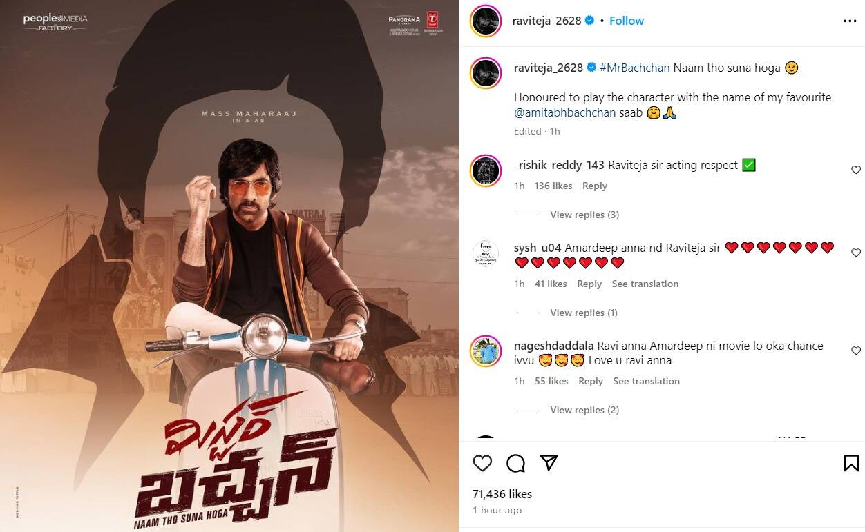 Mr Bachchan First Look: रवि तेजा की फिल्म 'मिस्टर बच्चन' का पोस्टर रिलीज, हू-ब-हू बिग बी की तरह आए नजर