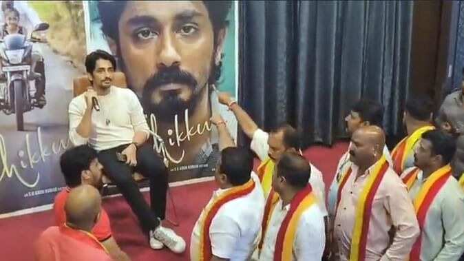 साउथ एक्टर सिद्धार्थ इन दिनों चर्चा में हैं। दरअसल, साउथ फिल्म एक्टर सिद्धार्थ की आने वाली फिल्म 'चिक्कू' के लिए बेंगलुरु में हुई प्रेस कॉन्फ्रेंस विवाद का कारण बन गई। प्रदर्शनकारियों द्वारा कार्यक्रम में बाधा डालने के कारण सिद्धार्थ को प्रेस वार्ता बीच में ही छोड़ने के लिए मजबूर होना पड़ा। इसे कर्नाटक रक्षा विदिके स्वाभिमानी सेना के सदस्यों ने बाधित किया। इसके बाद साउथ एक्टर प्रकाश राज ने सिद्धार्थ से माफी मांगी। वहीं, अब कन्नड़ स्टार शिव राजकुमार ने कन्नड़ सिनेमा की ओर से एक्टर से माफी मांगी है.