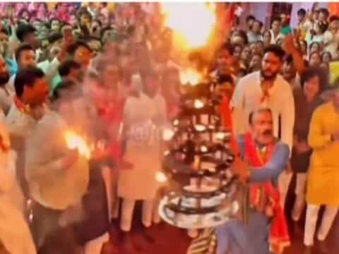 पंडितजी की आरती से भक्तों के कपड़ों में लगी आग, देखकर लोग हुए दहशत