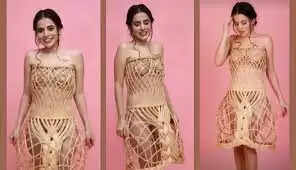 उर्फी जावेद ने बांस की टोकरी से एक पोशाक बनाई