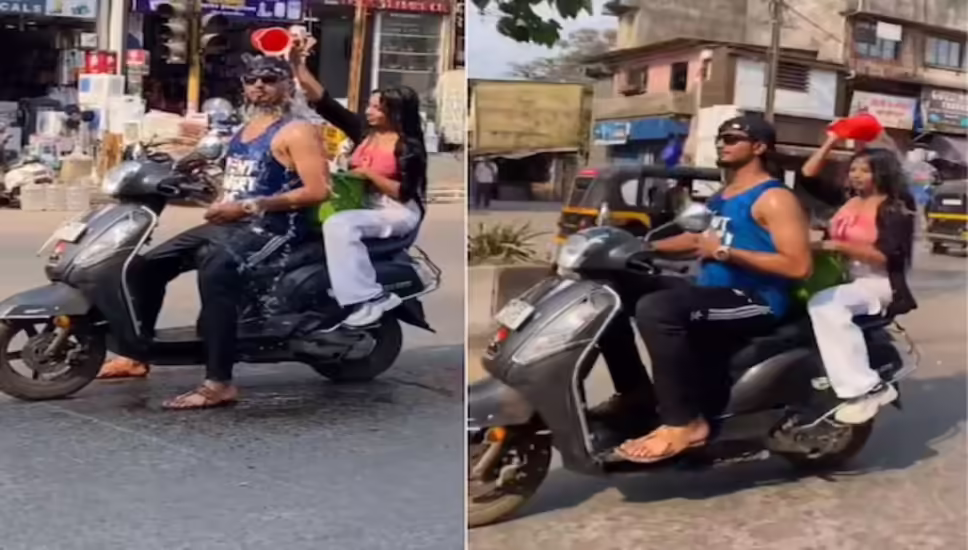 Scooty Bath Video: गर्मी से परेशान होकर चलती स्कूटी पर नहाने लगे लड़का-लड़की, वीडियो देखकर लोग भड़क गए